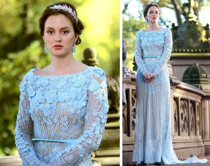 Blair (Leighton Meester) trug ein zeitloses Kleid inKlatschtante Aus der Sammlung von Designer ELIE SAAB. Das Kleid des Vintage-Stils wurde ausgewählt, um "alte Glamour-Glamour trifft, die zeitgenössische High-Fashion trifft", sagteKlatschtante Kostümbildnerin. Blairs Hochzeitssemble war ein Beispiel für wahre Eleganz.