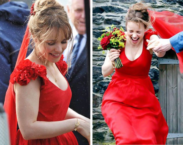 Mary (Rachel McAdams) inÜber die Zeit. gab den Heiligen Ehe mit einem mutigen roten Kleid neues Leben. Seine Einfachheit im Design ermöglicht den Sohle auf seine lebhafte Farbe und wurde von Rachel McAdams so gut getragen. Ein Kleid wie dieser Empwers braut, das Kleid ihrer Träume auszuwählen, egal wie unterschiedlich es ist.
