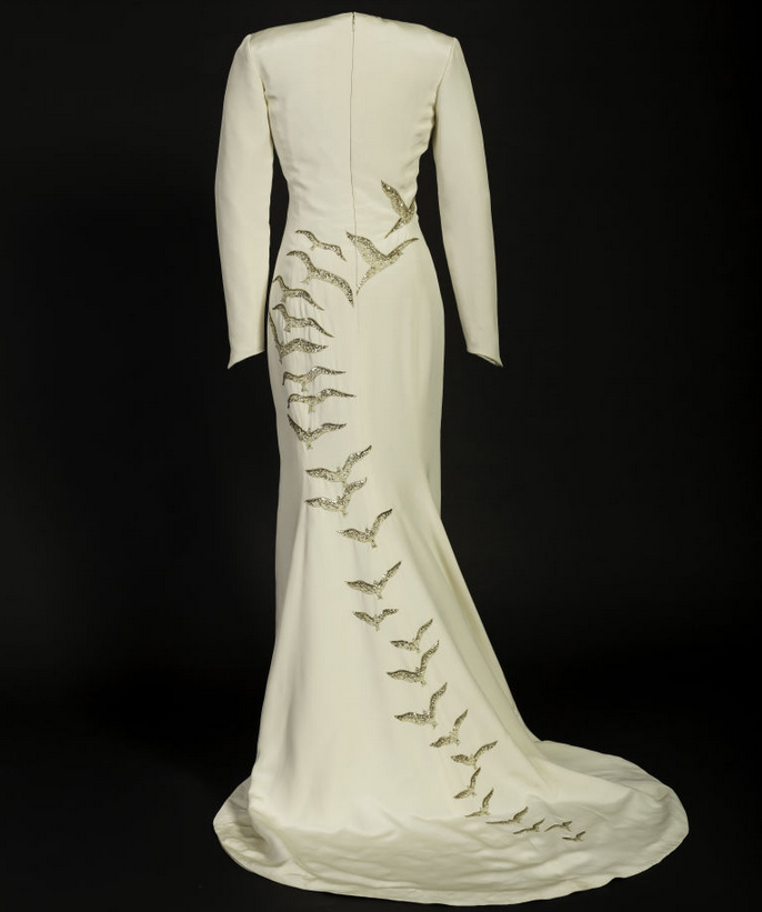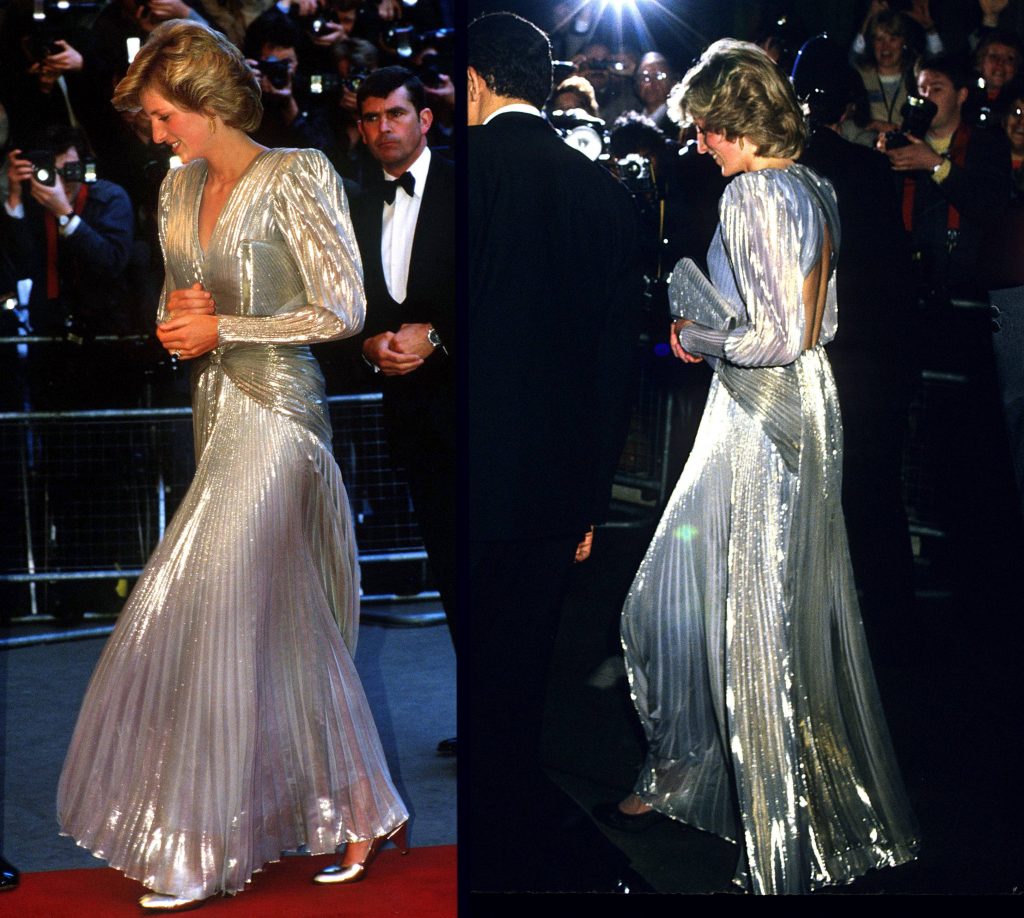 Dieses schimmernde silberne Kleid, das von der Prinzessin getragen wurde, war schwer zu vergessen. Das backlose Detail gilt als Risqué-Wahl, aber es ist das, was den Look gemacht hat.