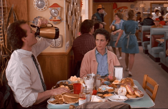 Nachdem unsere mürrischen Weatherman Phil Connors erfreut, dass das Leben keine Konsequenzen hat, und er kann aufwachen und täglich die Reset-Button treffen, er wird an seinem lokalen Abendessen ein paar süße Frühstücksnahrungsmittel verrückt. Würdest du nicht? Von Milchshakes und Donuts zu klebrigen Brötchen und Zimtrollen würden wir wahrscheinlich nach dieser Mahlzeit ohnmächtig werden, aber es wäre es wert.