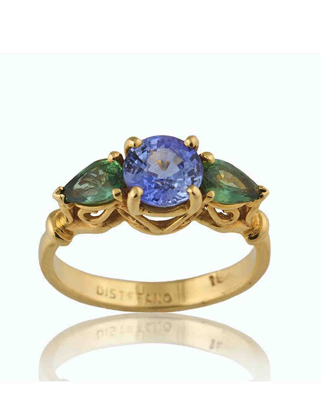 Ist der Verlobungsring Ihnen auch diese Vintage-Prinzessin Vibes geben oder ist es gerade ich? Diese blauen und grünen Saphiren, die aussehen wie eine Blume mit Blättern auf jeder Seite sind absolut atemberaubend und ich wette, Sie bereits Wald themed Hochzeit zu denken.