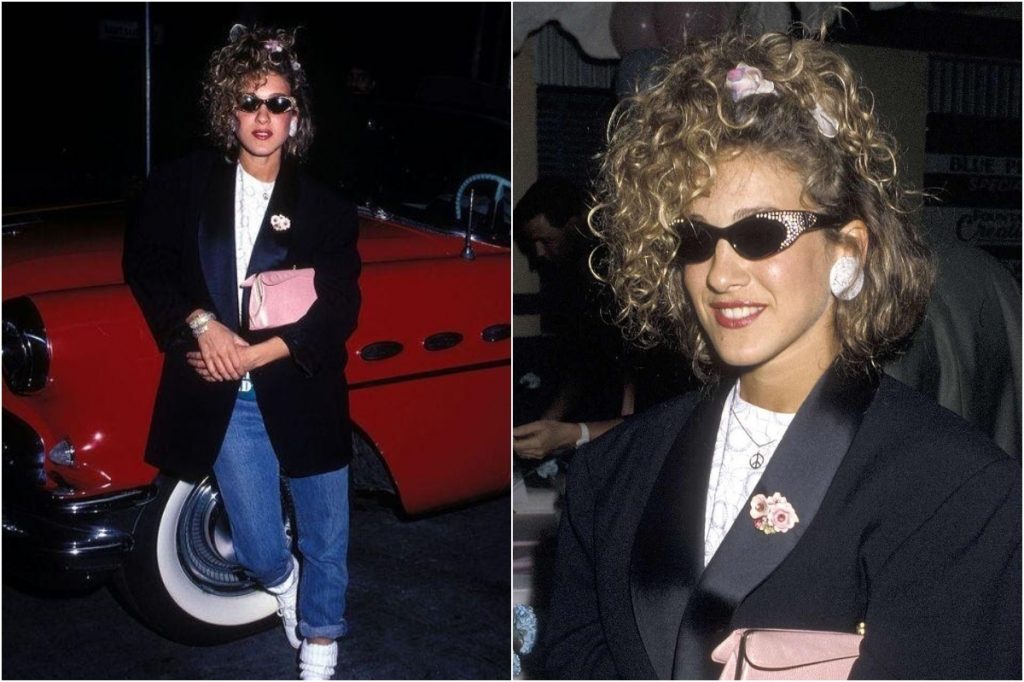 Sarah Jessica Parker war schon immer ein sehr stilvoller Promi, also ist es kein Wunder, dass sie in den 80er Jahren gedeiste. Sie kombinierte alle Top-80er-Trends in einem Look. Ein unordentlicher lockiges Pferdeschwanz, gebunden mit einem großen Scrunchie, 80er Jahre Blue Jeans und einem übergroßen Blazer und diesen funkelnden Farben vervollständigen das Look perfekt.