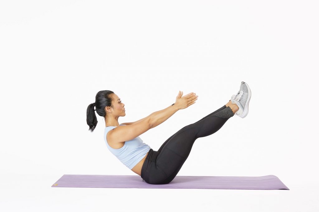 Dies ist eines der anspruchsvolleren Bewegungen in unserer Routine, aber es wird schnell Ergebnisse. Legen Sie sich auf dem Rücken mit gestreckten Beinen und ausgestreckten Armen gerade hinter dem Kopf. In einer schnellen Bewegung, heben Sie den Oberkörper aus dem Boden Walken, und heben Sie die Beine in der gleichen Zeit, versuchen, Ihre Zehen zu berühren. Ihr Körper wird eine V-Form erstellen. Wenn diese Puts auf dem Rücken unter Druck, ändern, indem Sie Ihre Beine auf dem Boden zu halten. Verwenden Sie keine Impulse zu bekommen. Wiederholen Sie dies für 45 Sekunden.
