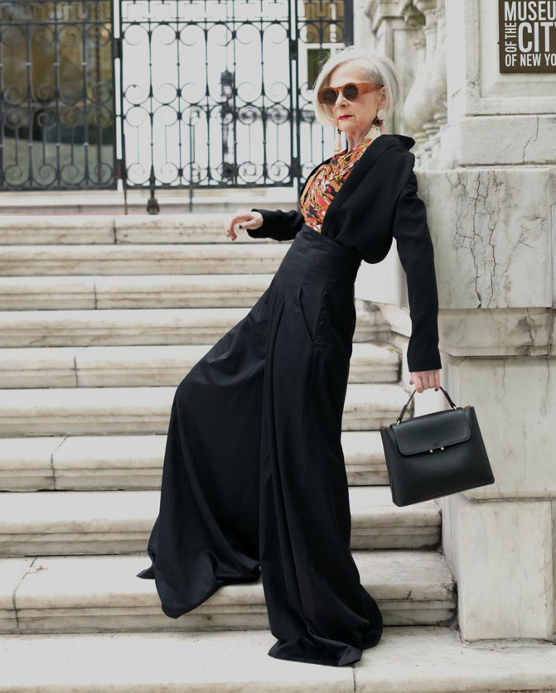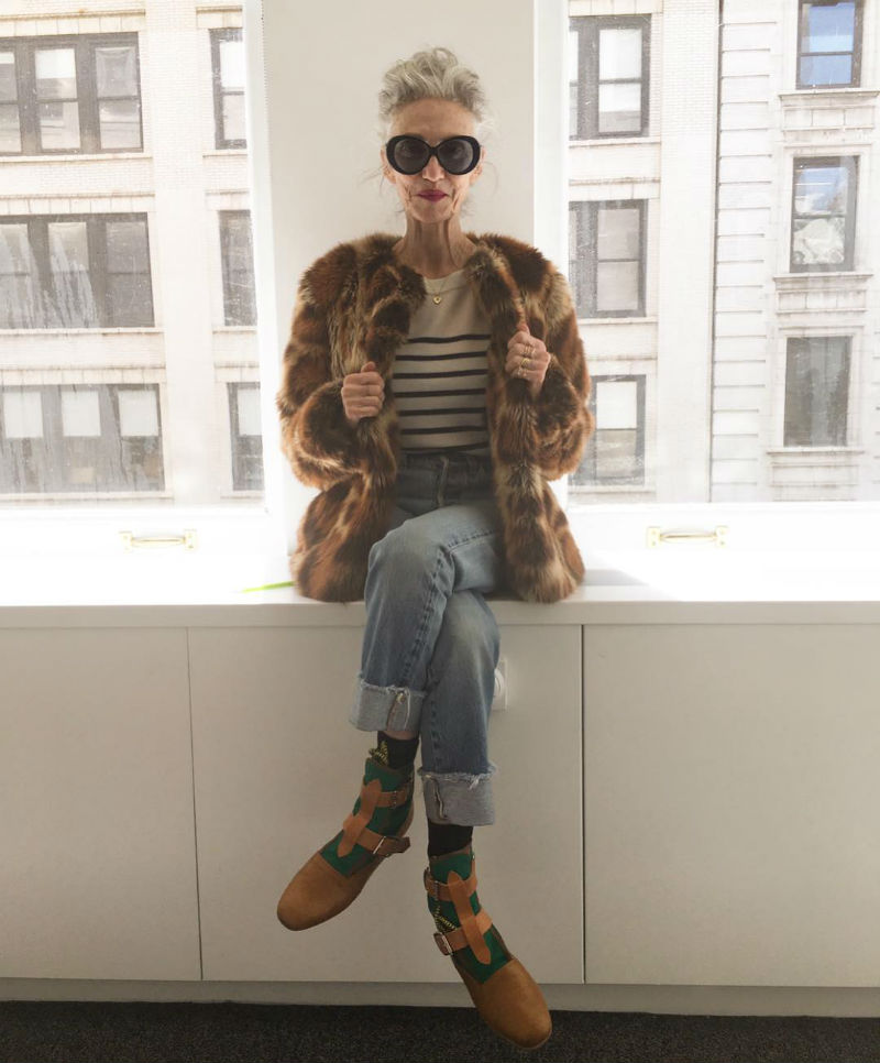 Ein NYC-Stil-Symbol für das Alter und bekannt für ihre Gläser ihrer lebensgroßen, dieser 95-jährigen weiß, wie man das Leben in vollen Zügen lebt. Sie schichtet sich mit luxuriösen Materialien und zeigt, dass Sie mit dem Alter nicht den Stil opfern, Sie verbessern es nur. Sie ist Glamour inkarniert und sagt, dass ihre Falten ein "Ehrenabzeichen" sind. Yaaass.