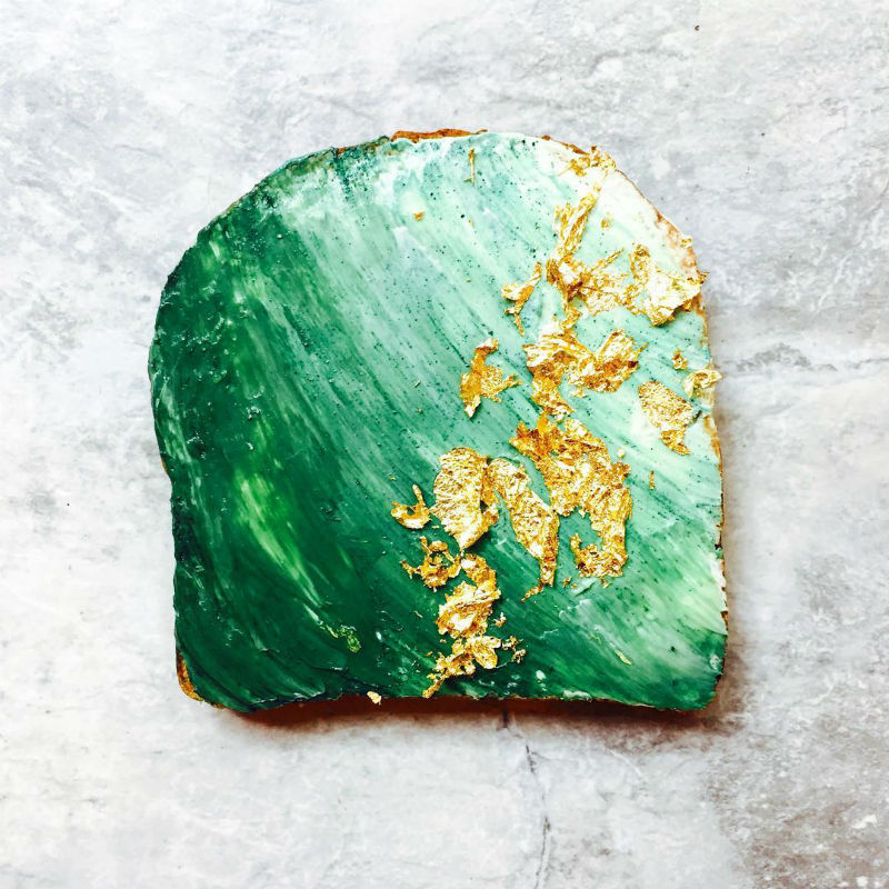 Man kann diese Toast-Kunst durch nicht so elegantes Fingergemälde oder Adeline-Weg (mit einem Buttermesser oder einem Essstäbchen) erfüllen, indem er totierende Bewegungen verwendet, um ihre verträumten Wirbelstrudel und Ombres zu erreichen.