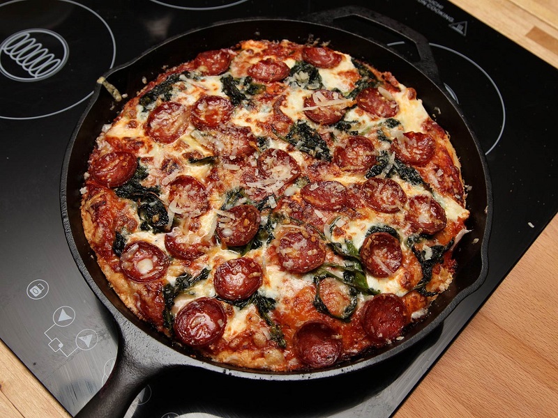 Anstatt Ihre Pizza in der Mikrowelle zu erwärmen oder zu warten, um es mit zusätzlichen Wasser in den Ofen zu erwärmen, verwenden Sie Ihre Pfanne. Dies hält es knusprig und wird gleichzeitig nicht zu trocken sein, wenn Sie den Deckel verwenden.