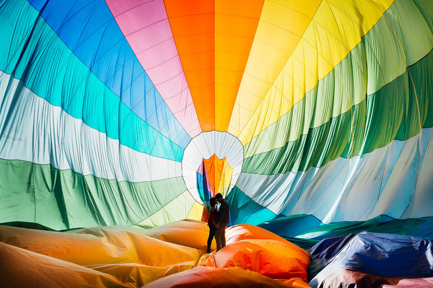 9. Wurde das in einem Heißluftballon aufgenommen? Wir lieben den bunten, majestätischen Kuppel um sie herum, das ist eine Erinnerung, die nur Ameisen in einem massiven Universum sind. Wir lieben es, dass dieses Paar nur lässige Kleidung trägt und nicht in der Mitte eines Nahaufnahme von Glitzy-Glam Shot ist. Leicht unser Lieblingsschuss auf der Liste.