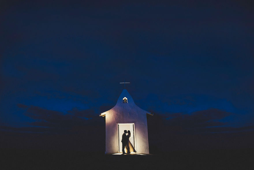 2. Es gibt nichts Wildes oder verrücktes, um einen Schuss vor einer Kapelle zu machen, aber dieser ist voller samtiger, spiritueller Stimmung und wir sind besessen. Die Beleuchtung und Kulisse des Himmels ist unglaublich und gibt fast die Illusion, dass die Kapelle schwimmt - so romantisch.