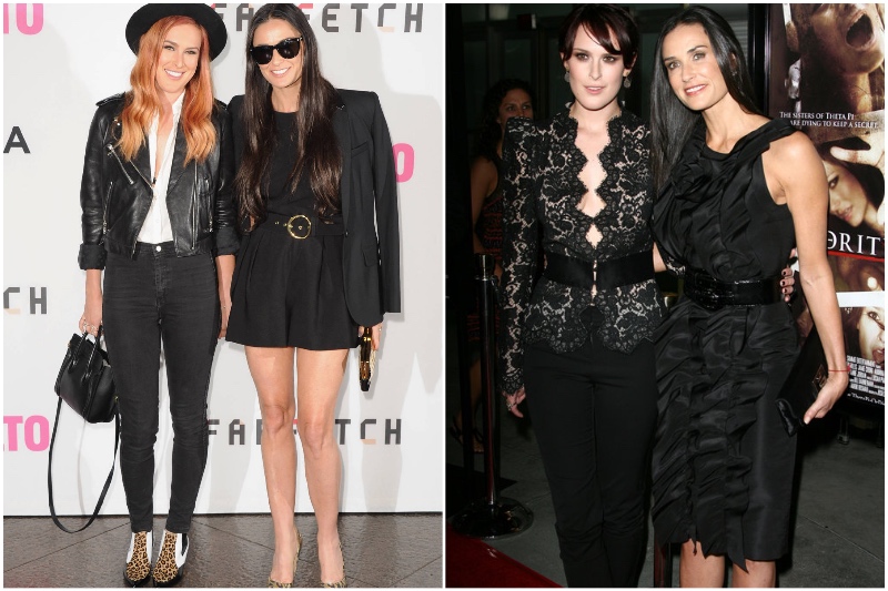 Sowohl Demi als auch Rumer haben eine sehr klassische Art von Stil. Saubere Linien, monochrome Farben. Aber wo DEMI für klassische Anzüge und Kleider geht, fügt Rumer ein Element mit einer Lederjacke oder einer interessanten Textur hinzu, während das Outfit immer noch sehr schick bleibt.
