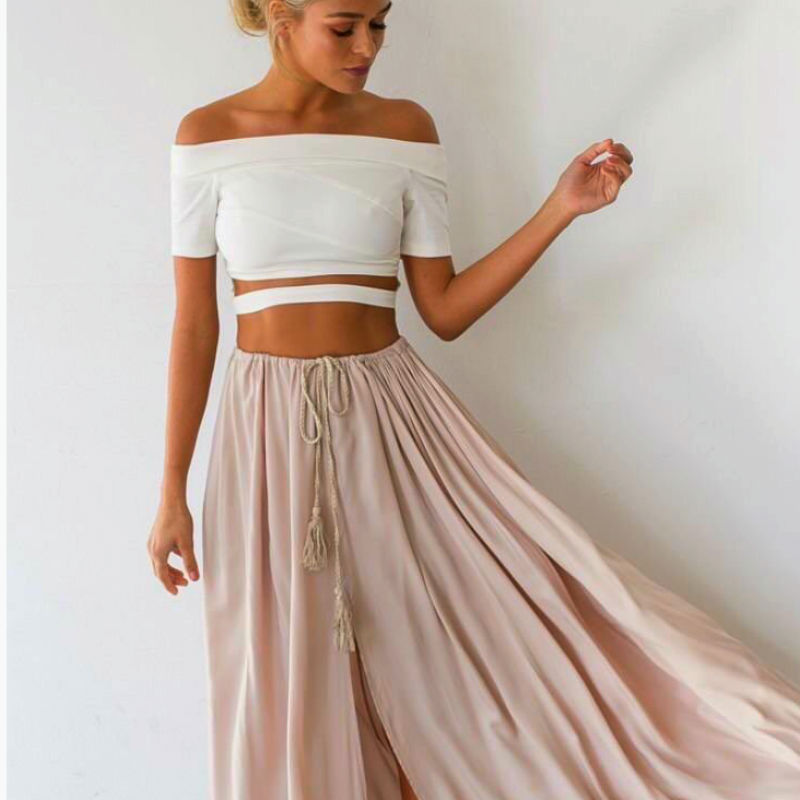 Dies ist ein Look für eine Prinzessin, und ob Sie es mit Kampfstiefeln oder Stilettos paaren, ist vielseitig und völlig verträumt. Der fließende Rock der Bauernstil ist Updates mit einem langen Frontschlitz und einer Quaste-Taille, während ein einfaches Weiß abseits der Schulter-T-Shirt mit einem zusätzlichen Band um die Taille umdrehen, um Ihre absehnlichen Abseile zu zeigen, als ein Gürtel.