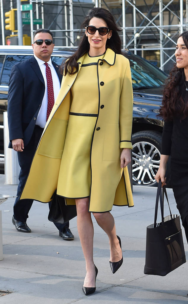 2. Dieses Bottega-Venetta-Ensemble mit Lederleitungen war ein ungewöhnlicher Blick nach Amal, und es ist so Megan von verrückten Männern. Wir lieben diese Farbe und Silhouette an ihrer gepaart mit dunklen Sonnungen und Stilettos. Sie trug es der Vereinten Nationen und war definitiv der beste, der dort angeht.