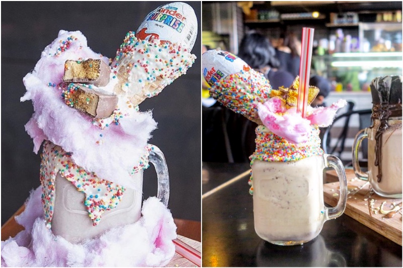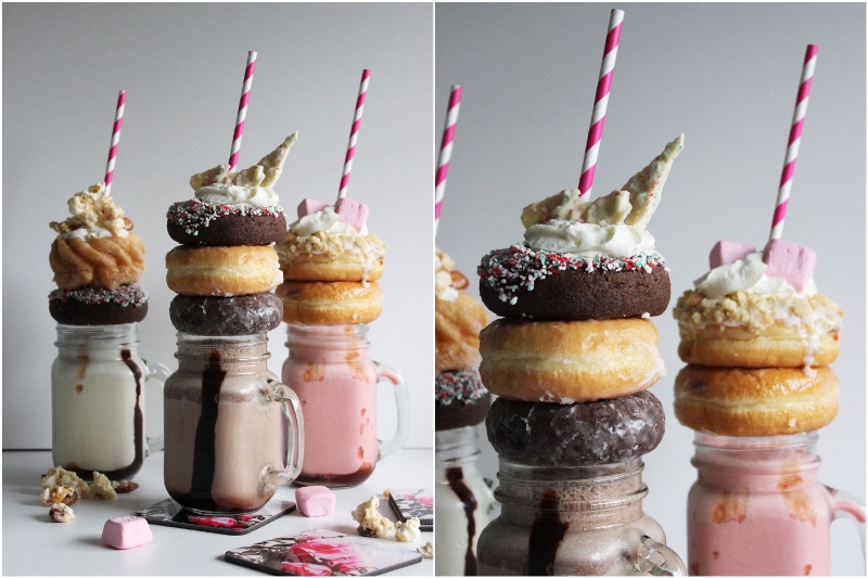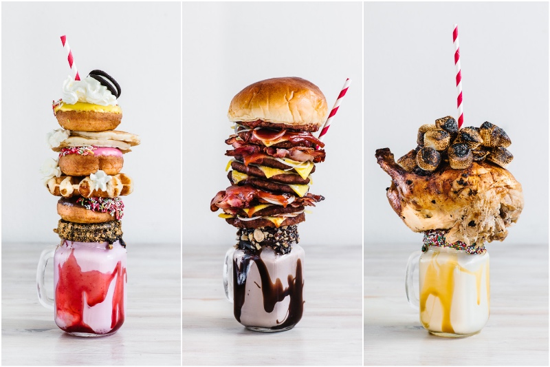 Beginnen wir mit wirklich extremen Milchshakes, oder? Warum beschränken Sie sich nur, um nur Sahne als Belag zu schlagen, wenn Sie 5 Donuts auf Ihrem Milchshake setzen können? Gehen Sie die Extra-Meile und schockieren Sie Ihren Körper mit einer Mischung aus süßen und herzhaften Aromen, indem Sie einen Milchshake mit einem massiven extremen Burger oder einem ganzen gerösteten Hühnchen belasten.