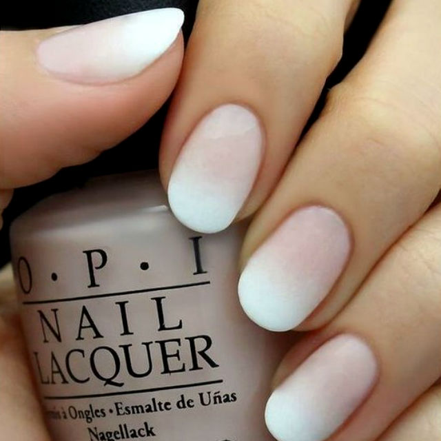 6. Dies ist ein weiteres neutrales bis weißer Ombre, das so sauber ist, und sieht auf kurzen Nägeln perfekt aus (keine 3-Zoll-Acrylkunde im Büro, doch traurige Damen). Die weiße Oberkante ergibt ein sauberes, minimales Finish, während der nackte rosa OPI-Schirm den Blick auf ein wenig aufschwächen.