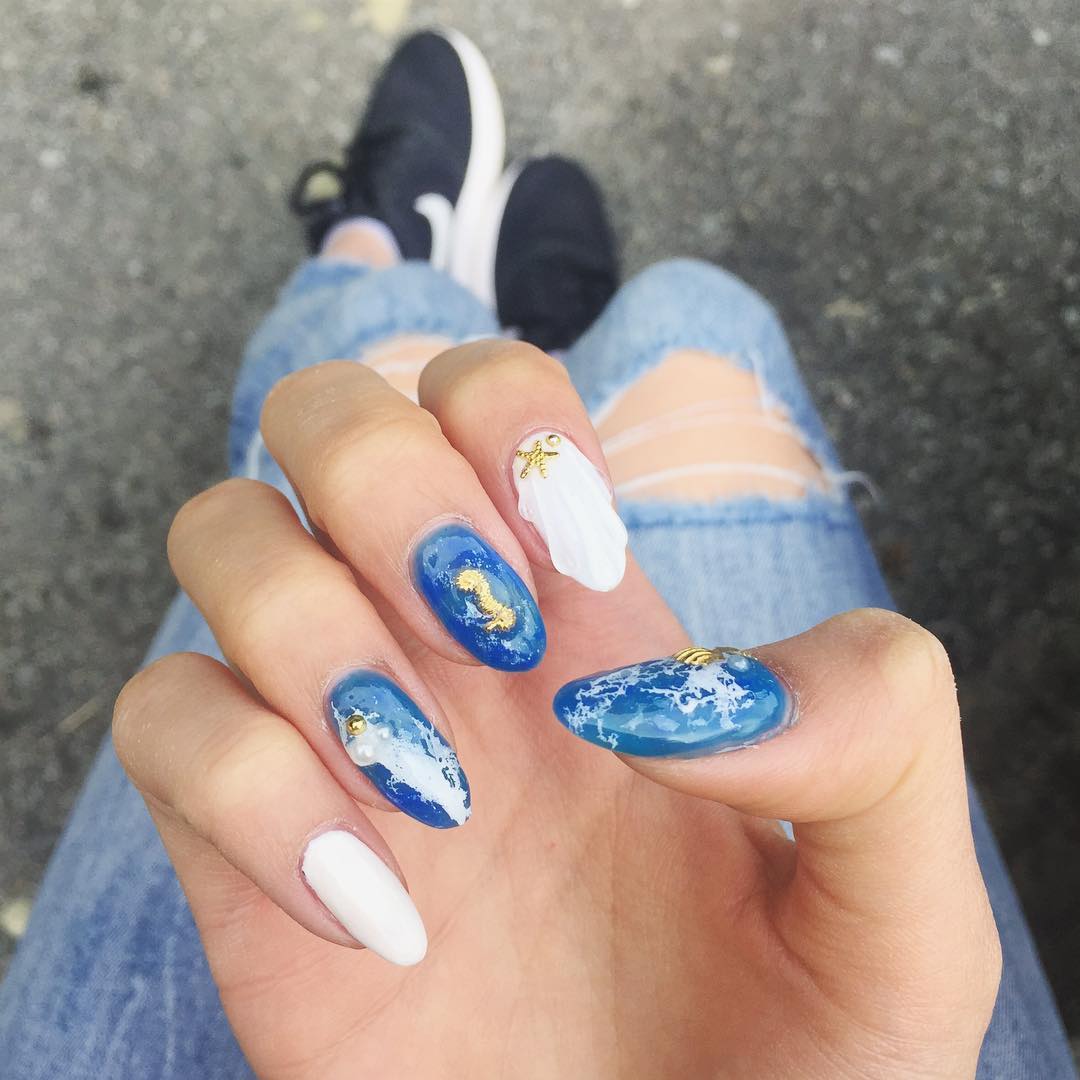 Wenn Sie nicht am Strand sein können, sollten Sie den Ozean nicht mitbringen? Die Leute machen genau das mit Ozean-Maniküren, die die Wellen- und Wasserbeschaffenheit genau richtig machen. Holen Sie sich wellenförmig mit einer coolen blauen Maniküre, um Ihr exotisches Ziel der Wahl anzupassen.