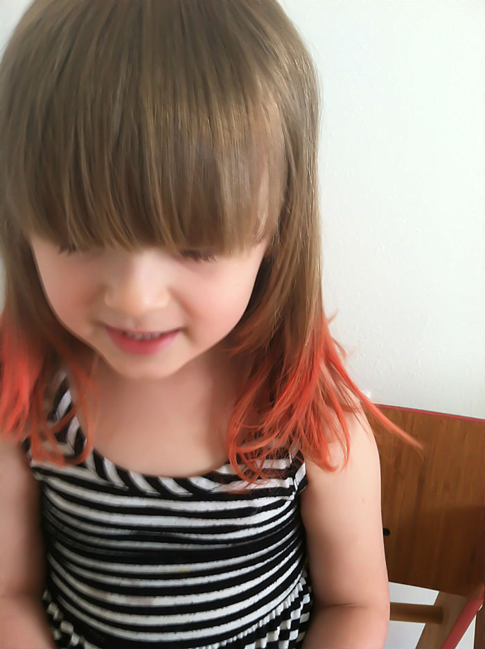 Es sollte auch beachten, dass wir die einzige nicht-halb-permanente Regel genehmigen, und die meisten Eltern, die ihren Kindern erlauben, ihre Haare zu färben. Dermatologen sagen, dass temporäre Farben einfach die Haarschaft beschichten und nicht so schädlich wie Farbstoffe, und dass ein Patch-Test nicht nur sicher ist, sondern nicht nur in Bezug auf Allergien ist.