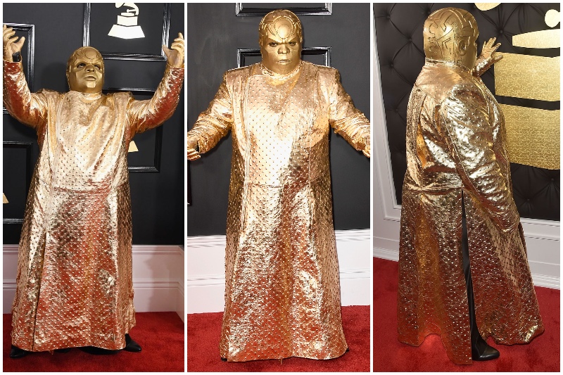 CEE Lo Green ist dafür bekannt, einige ziemlich laute Outfits zu tragen, aber dieses goldene, was alles aussah, war nur verrückt. Es ist schwer zu entscheiden, ob er aussieht, ob er wie ein seltsamer Alien aussieht, der er Erde aufnehmen kann, oder nur ein riesiger Ferrero-Rocher. So oder so ist es nicht ein guter Blick auf ihn.