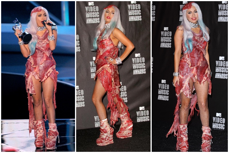 Lady Gaga hat einen Tarifanteil an unerhörten Outfits getragen, aber diese bleibt jedoch der schockierende. Seltsame Stoffe, Plastikblasenkleider, verrückte Hüte und seltsame Frisuren sind alle in Ordnung und Dandy, aber ein Kleid aus echtem Fleisch - das ist einfach zu weit.