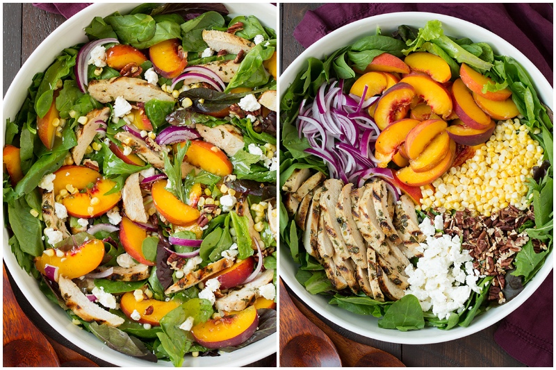 Wer liebt nicht Pfirsiche in ihrem Salat, bin ich richtig? Dann wieder würde ich Pfirsiche auf alles haben. Aber in diesem Salat vor allem mit gegrilltem Hähnchen kombiniert, Mai, Ziegenkäse, Pekannüsse, und roten Zwiebeln, es ist einfach die beste. Beträufelt mit weißer Balsamico-Honig-Vinaigrette ist dieser Salat einfach himmlisch.