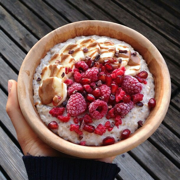 Graben Sie die glücklichen Reize zum Frühstück und gehen Sie stattdessen auf rollte Hafer, die 5 Gramm Faser pro Portion enthalten. Haferflocken hilft Ihrem Körper, Cholecystokinin natürlich zu erhöhen, was ein Appetit-regulierendes Hormon ist!
