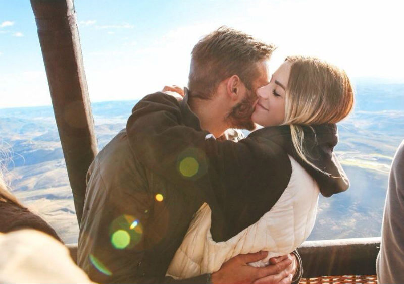 Fahren Sie auf eine heiße Luftballonfahrt! Nichts paarweise besser mit einem Glas Wein. Wenn Sie mit Ihrem Liebhaber am Himmel auf schwindelende Höhen steigen, können Sie die Erinnerung an eine Ansicht teilen, die keiner von Ihnen jemals vergessen wird.