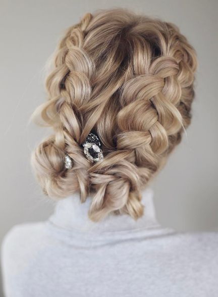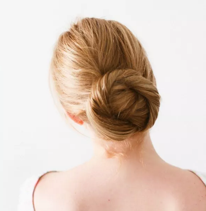8. Für diejenigen, die es ein wenig sauberer halten möchten, ist dieses klassische Brötchen der Look, auf den Sie gewartet haben. Die subtileziehende Wirkung, die die schönen Linien an der Rückseite erzeugt, ist eine charmante Wendung auf dem Brötchen, die es weniger aufwendig und würdig von einem Hochzeitskleid und Perlenohrringen macht.
