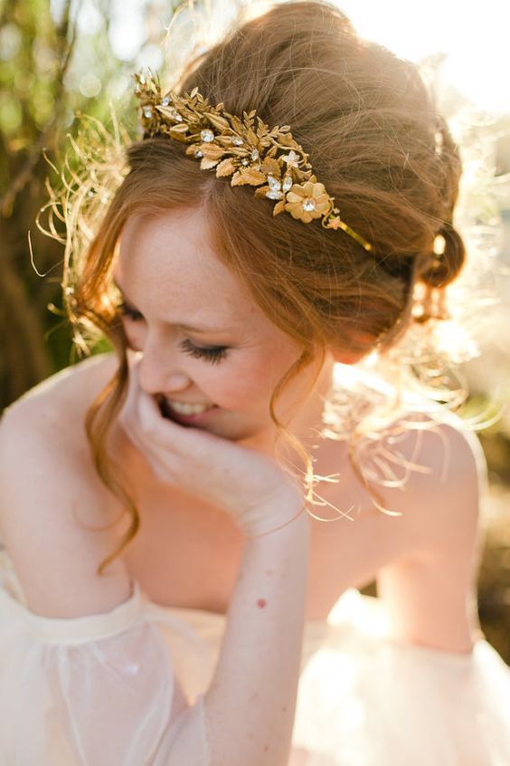 4. Dieses unordentliche und voluminöse Brötchen mit festgehaltenen losen Wellen und Wispen an der Vorderseite ist die perfekte, zerfallende Prinzessin für jede Braut. Paare, die sich gut mit einem BEJEWELELED-Stirnband wie dieses mit Mini-Zweigen, das mit dunklen Haaren wunderschön gegenübersteht, ein Paar.