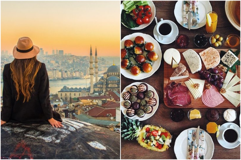 Ein türkisches Frühstück besteht meist aus einem Omelett, etwas Käse, Oliven, Brot und Obst. Es gibt eine Menge zur Auswahl und Sie eine Menge von Nährstoffen in der ersten Mahlzeit garantiert.