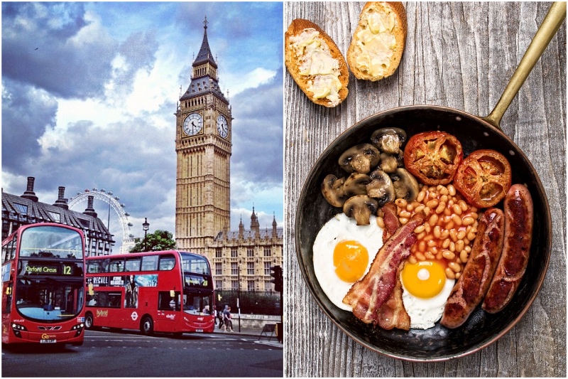 Ein komplettes englisches Frühstück ist durchaus ein Teller voll. Es besteht in der Regel aus pochiert oder Rührei, Speck, Toast, Speck, gegrillten Tomaten und Champignons und Bohnen. Es gibt einige Varianten, die Rösti oder Blutwurst zu schließen. Es ist viel, aber am Morgen ein solches Fest essen werden Sie auf jeden Fall voll halten, bis Mittag.