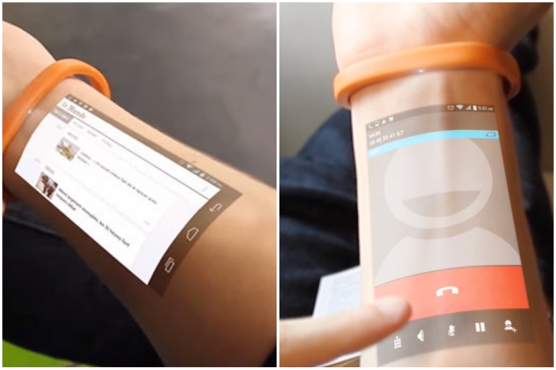 Dieses kleine Gerät ist wirklich beeindruckend. Sie wissen, wie in allen den futuristischen Filmen Menschen haben nicht einmal Telefone oder Tablets oder Laptops. Die Dinge sind nur auf dünne Luft projiziert? Gut, das ist sehr nahe an. Anstatt ein Telefon zu haben tragen Sie nur ein Armband, dass die Projekte eine Smartphone-Schnittstelle auf den Arm.