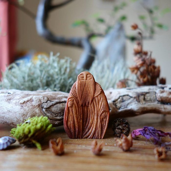 Wie hat sie damit angefangen? Nun, laut Jan sah sie gerade einen tiefen Kratzer auf der Avocado-Grube, und es war so pigmentiert, dass sie gerade gezwungen fühlte, sich darin zu karieren. Die Orte, die Menschen inspirieren finden, huh? Als Nächstes, was Sie wissen, dass sie Gesichter und kleine Pilze aus Avocado-Gruben karben, dann begann sie, keltische Figuren zu schnitzen. In diesen Tagen zeichnet sie sich gerne verschiedene Gesichter von Waldgeistern und keltischen Göttinnen mit langen fließenden Haaren. Ihre Miniaturfiguren können gekauft werdenEtsy und als kleine dekorative Statuen verwendet oder als Anhänger getragen. Sie teilt auch Fotos von ihren Kreationen anInstagram..