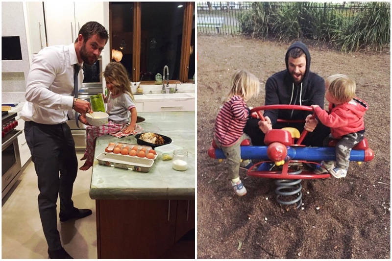 Chris Hemsworth könnte Thor sein, aber vor allem ist er ein Papa. Er hat drei niedliche kleine Kinder, und egal wie beschäftigt sein, ein Gott zu sein könnte, findet er immer Zeit, mit seinen Kindern zu spielen. Seine Frau sagt, dass Chris liebt, dass er Nahrung für seine Kinder bereitet, und es spielt keine Rolle, ob er nur von einem roten Teppich nach Hause kam, wenn seine Kinder einen Snack wollen, den er sofort kochen wird.