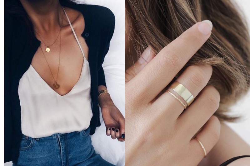 4. Hinzufügen eines kleinen Goldes Zu Ihrem Outfit wird es sofort teurer aussehen. Das Ziel ist es nicht, es nicht zu übertreiben. Ein paar Goldzubehör, wie einige Ohrringe und ein Armband. Keine Notwendigkeit, eine goldene funkelnde Jacke und eine goldene Geldbörse zu tragen - es wird nur klebrig aussehen.