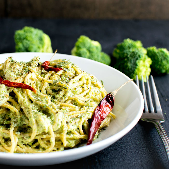Würziger Knoblauch Spaghetti in Broccoli-Käsesauce