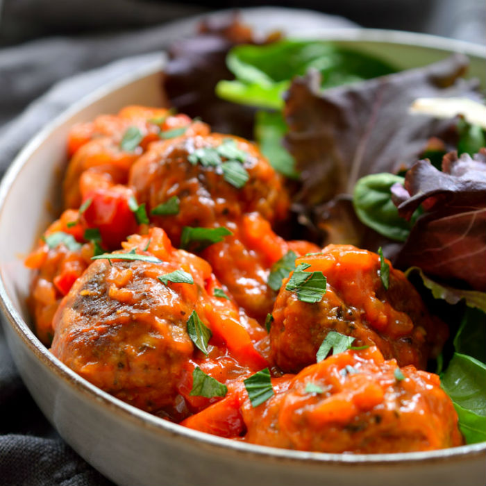 Mach dir keine Sorgen Veganer, wir wissen, dass diese Fleischbällchen nom-würdig aussehen, und wir haben ein Gegenstück für dich, das wirklich hält. Im Gegensatz zu anderen veganen Fleischbällchen, die in Tomatensauce zerfallen, behalten diese Seitan-Babys ihre Form mit Hilfe von Kartoffelkartoffeln und weißen Bohnen in ihnen. Sogar Carnivores wollen es ausprobieren.