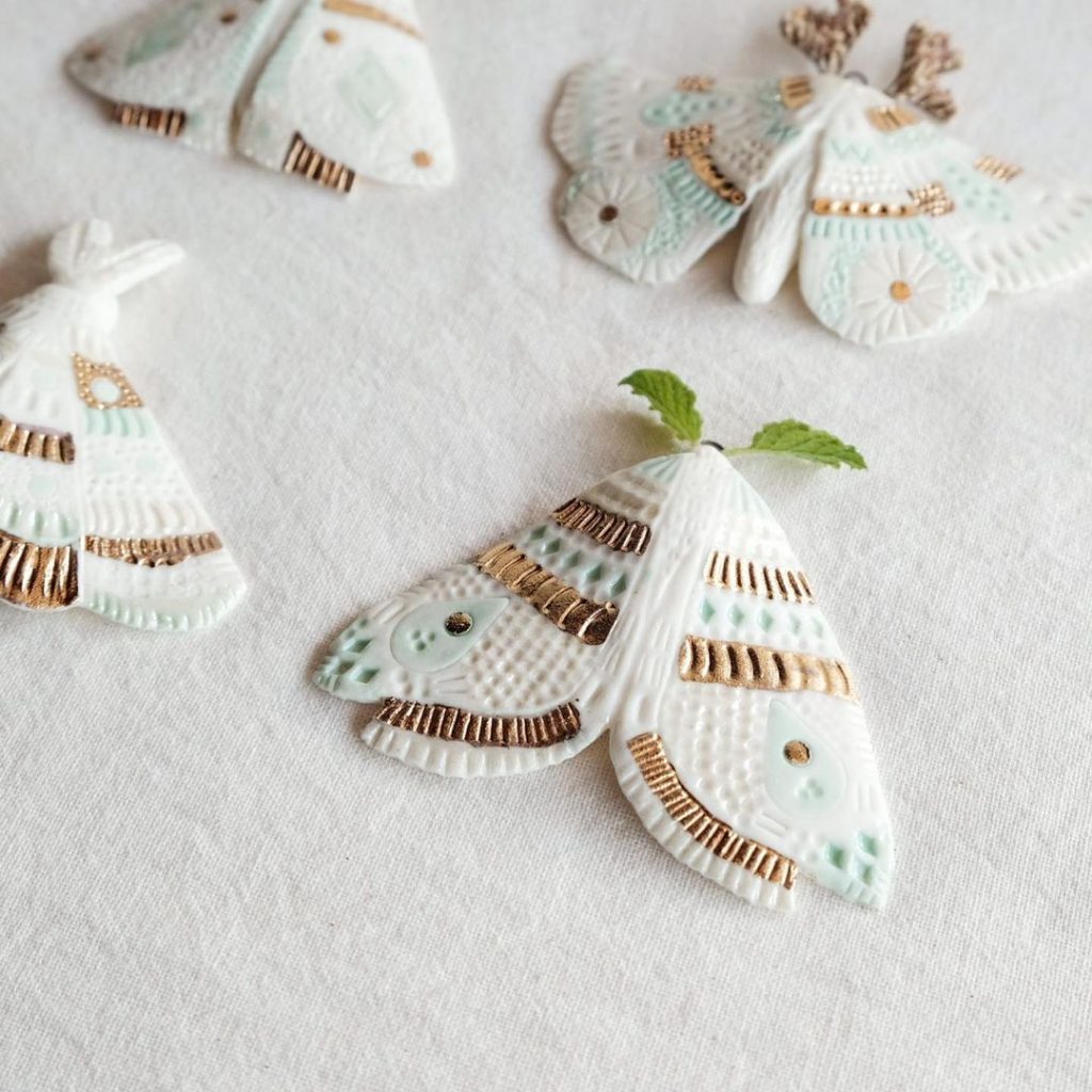 Obwohl die meisten Kreationen für eine Tischplatte oder Oberfläche gedacht sind, wirken wir an diesen Mottenwandhängen. Sie beschreibt das Design als "langwierig und fein" zu machen, aber es lohnt sich. Einige haben Divots für Zweigs, aber einer dieser Süden hat tatsächlich seine eigenen flaumigen Antennen, die vorab geformt wurden!