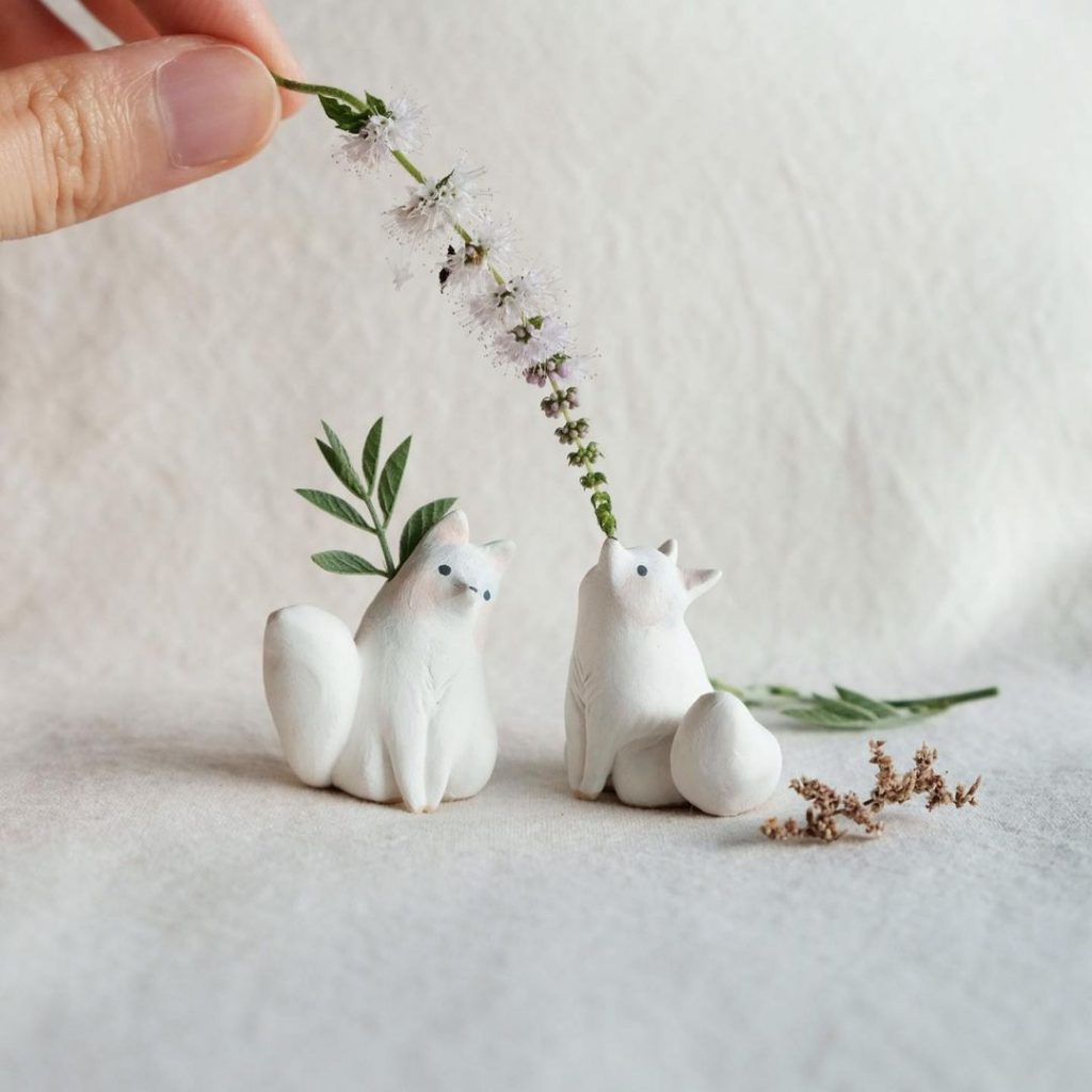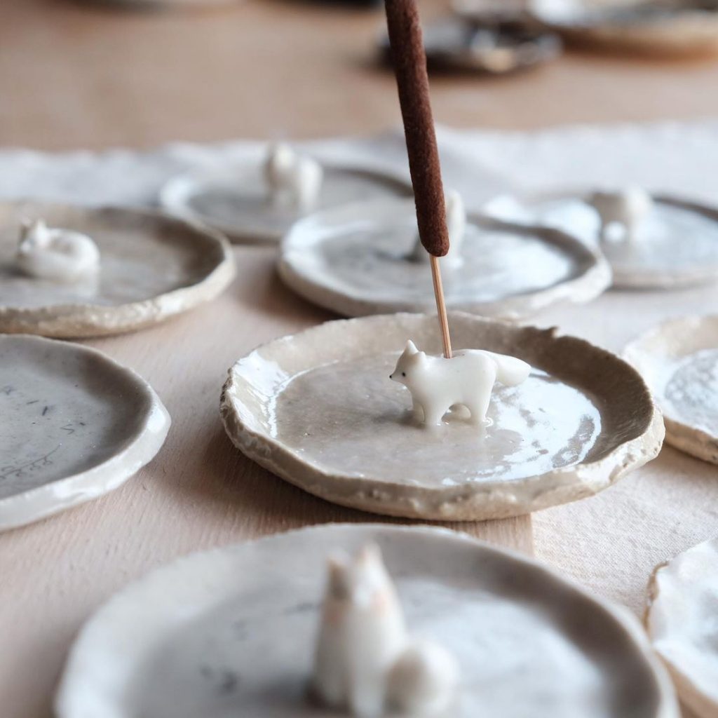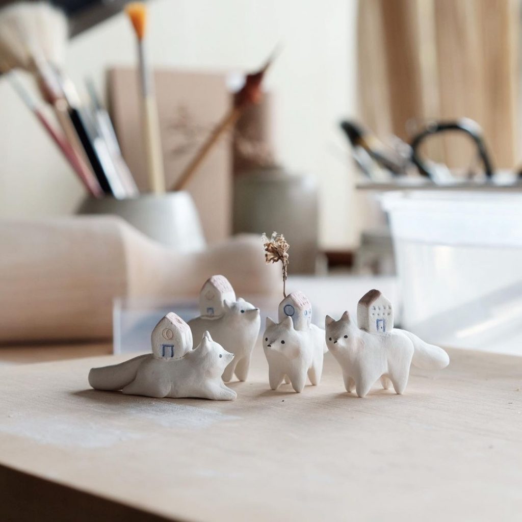 Chien Nie teilt ihren Prozess immer neben ihren Kreationen, in der Beschriftung. Nehmen Sie diese Familie der Füchse, zum Beispiel. Sie zeigt uns die Schritte von der Vorabfeuerung bis hin zum Frennen von Glasur und mehr. Die Füchse haben winzige Häuser auf dem Rücken, die Zweigs und / oder Räucherstäbchen halten können.