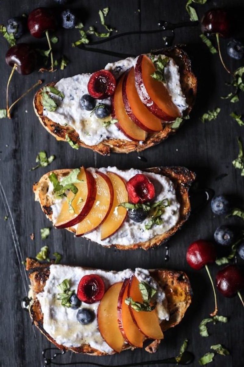 8. Kirsche und Pflaume Toast mit Heidelbeeren Whipped Ricotta