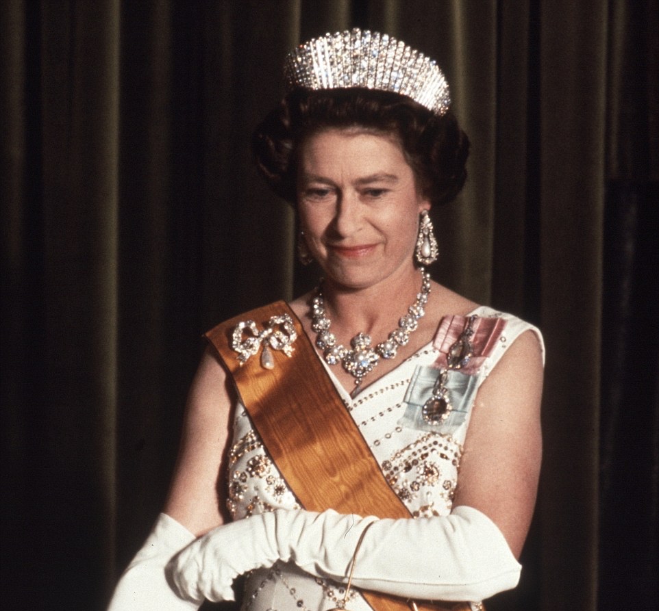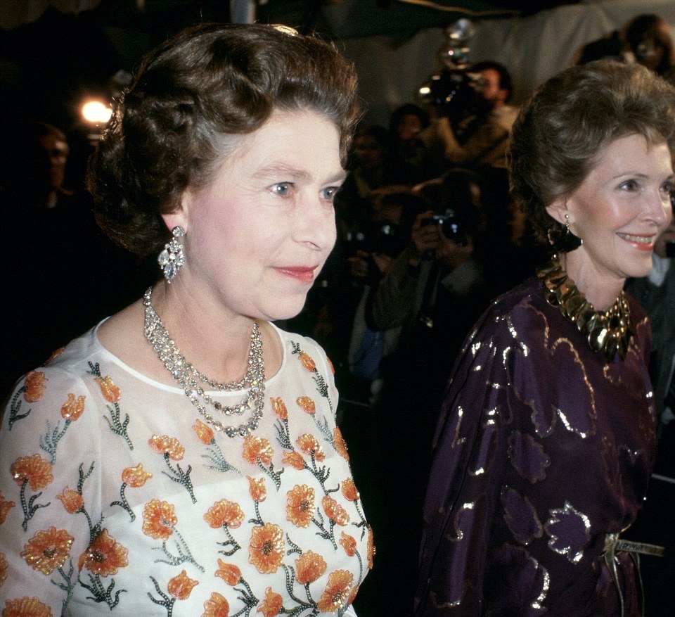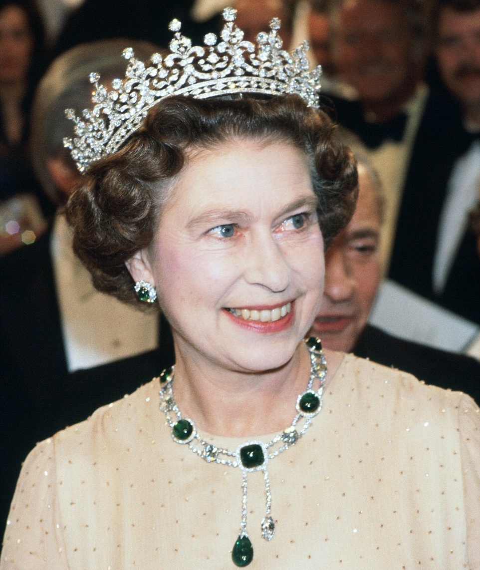 5. Diese glitzernde Halskette wurde von ihrem Vater 1950 der Prinzessin Elizabeth präsentiert, und es war seitdem ein Favorit von ihr. Es besteht aus 105 Diamanten. Sie liebt es, diese Halskette zu tragen, und auf diesem Bild trägt sie es 1983 mit einem Konzert mit Präsident Ronald Reagan.