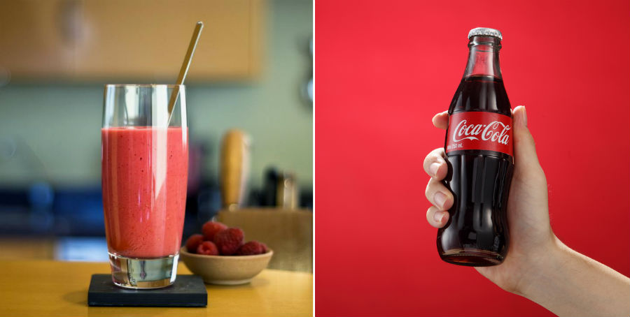 1 Glas Multi-Frucht-Smoothie = 1 kleine Flasche Coca-Cola
