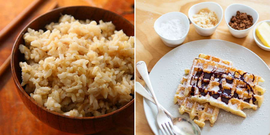 Sie können 2 ganze Wiener Waffeln essen, und es ist das gleiche wie ein 100 g brauner Reis. Gesundheitsnüsse werden wahrscheinlich davon ausflippen. Ja, die Waffeln haben viel mehr Zucker und weniger nachhaltige Energiezutaten. Und brauner Reis ist auch in Kalium ziemlich hoch, was ein Plus ist.