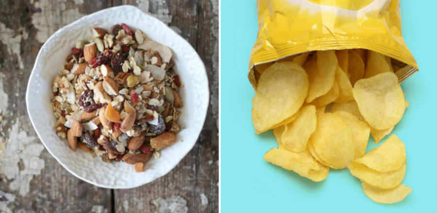 Chips sind ölig und oft mit Transfetten gefüllt, während Muesli als Zucker hoch sein kann, aber Ihre Energie kärben wird. Muesli ist auch förderer mit Joghurt, Honig und anderen gesunden Zutaten, während Chips gut mit ... saure Gummibandwürmer und Soda? Du entscheidest.