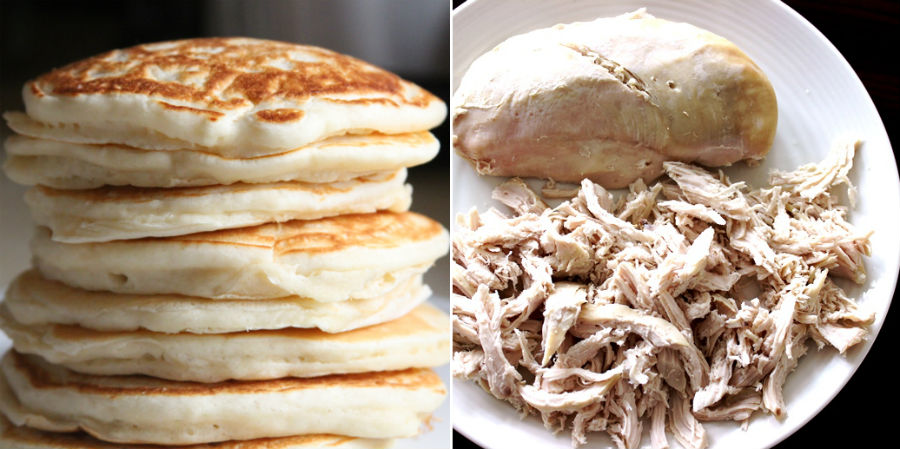 1 gekochte Hähnchenbrust = 1 leckere hausgemachte Pfannkuchen