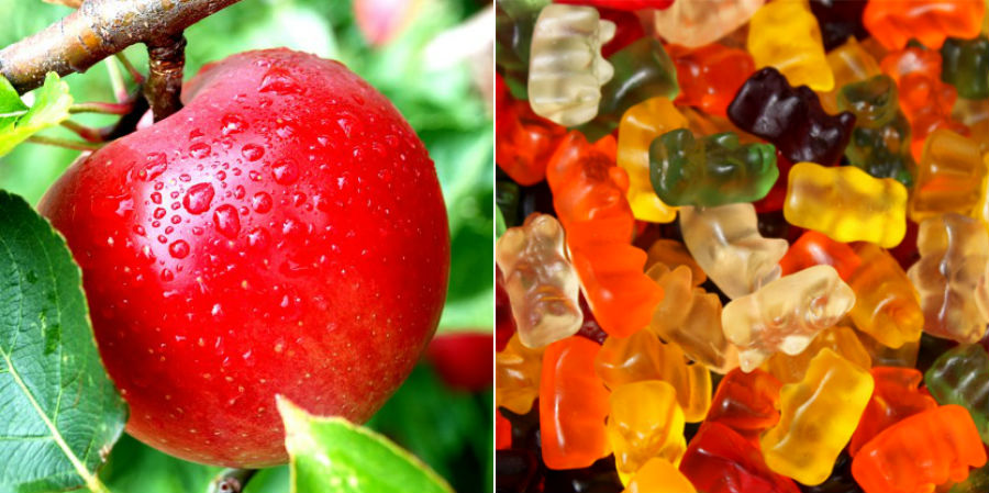 Ja, quantitativ, dies ist die gleiche Menge an Kalorien, die Sie aufnehmen. Aber sie sind von zwei sehr unterschiedlichen Lebensmittelgruppen. Äpfel sind mit Pektin und anderen köstlichen, nahrhaften Aspekten gefüllt, während Gelee-Bären nur Zucker sind, dass Ihr Körper eine schwere Zeitabwicklung hat. Aber vergessen Sie nicht: Sündigen Sie nicht diesen Apfel oder es wird genauso Zucker wie die Bären sein!