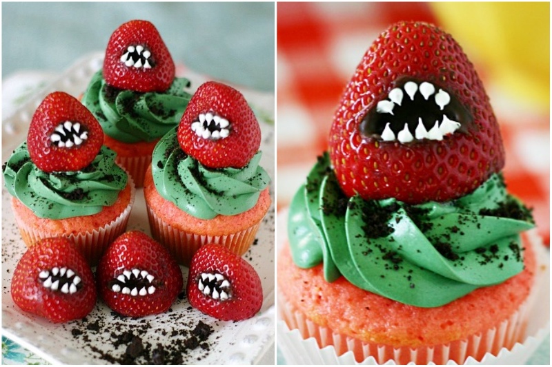 Dies ist die ungewöhnlichste Version eines Halloween-Cupcakes, das wir in diesem Jahr gefunden haben. Monster Erdbeeren, die bereit sind, Ihren Finger abzußen. Wer wusste, dass Beeren so unheimlich sein könnten?