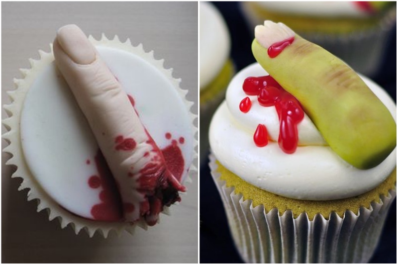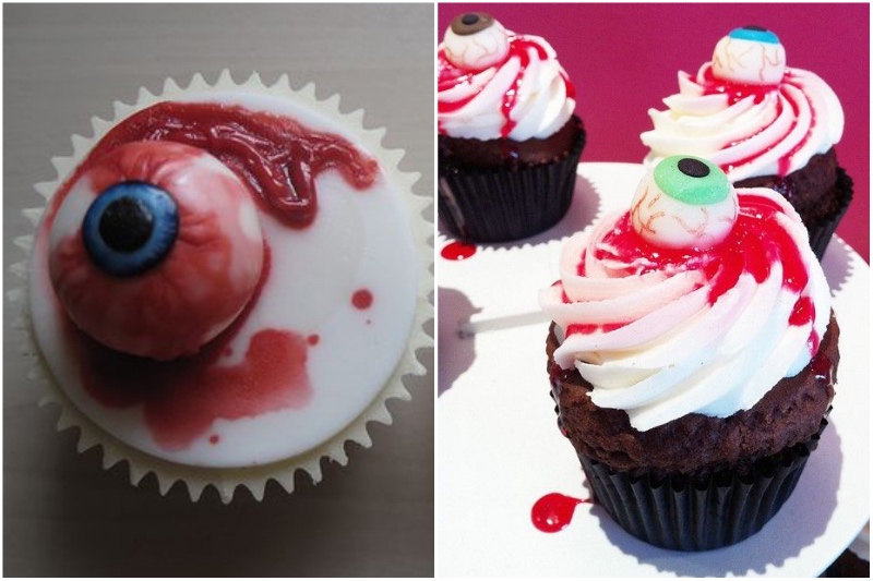 Apropos von Körperteilen als Cupcake-Dekorationen - Augäpfel sind ein anderer Klassiker. Machen Sie sie ultra realistisch, oder verwenden Sie einfach geschälte Trauben, um ein Auge zu imitieren.