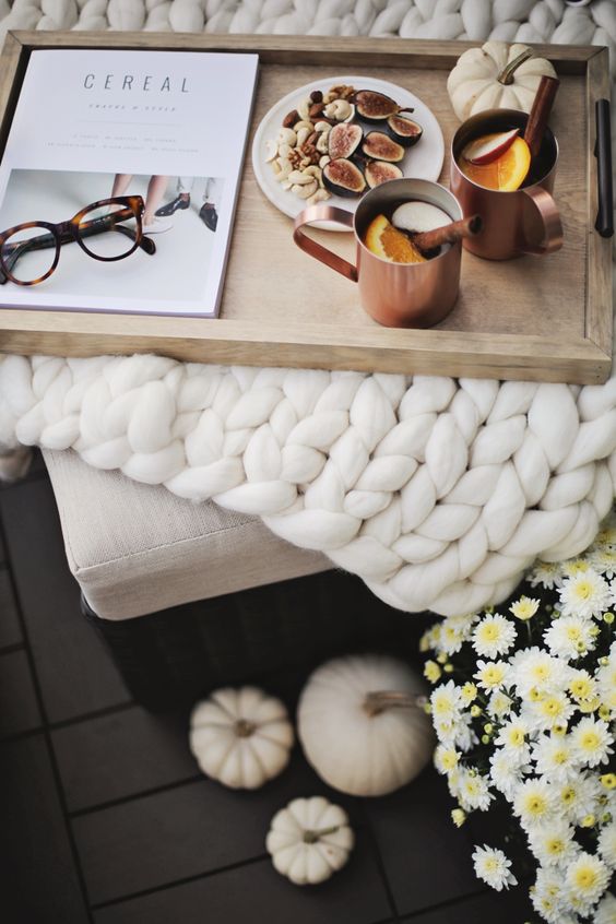 In diesem Jahr dreht sich Hygge in der Nähe verschiedener Texturen im selben Raum. Aber alle sollten super weich sein! Versuchen Sie, ein paar Faux-Pelzwürfe mit flauschigen Wollstücken und einem klobigen, üppigen Strick zu kombinieren (Calvin Klein-Bettwäsche und Decken sind unsere Lieblingsstricke). Wir lieben auch Uber-Chunky-Makro-Stricke.