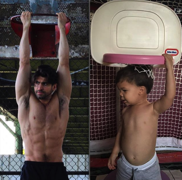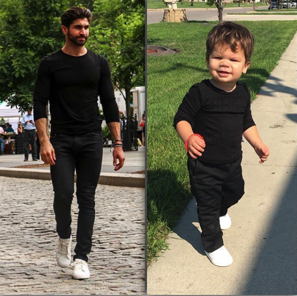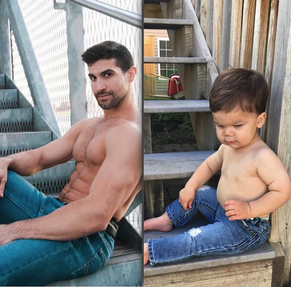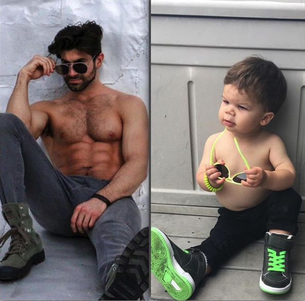 Sie wissen, wie oft Sie Bilder von Promis finden, das online das gleiche Kleid mit trägt#whoworeitbetter. ? Nun, eine kreative Mutter hat für diesen Hashtag eine bessere Verwendung gefunden. Eines Tages kleidet Katina Behm ihr Kleinkind-Sohn Audie an und sie konnte das Hemd nicht auf ihn bekommen. Ihr Baby in einem aufgeknöpften Hemd zu sehen, machte sie denk, dass er auf einem Deckel eines Magazins oder einem Deckel eines Romantikromans gehörte. Es war witzig, aber eher, sie erkannte, dass ihr Modell Bruder Aristoteled Polites wahrscheinlich ein ähnliches Bild von sich selbst auf seinem Instagram hat. Also nahm sie einen schnellen Snap von ihrem Kind, fand dann ein ähnliches Foto ihres Modellbruders, schuf eine Collage und schickte es an ihre ganze Familie, um sie mit "Wer hat es besser getragen?"
