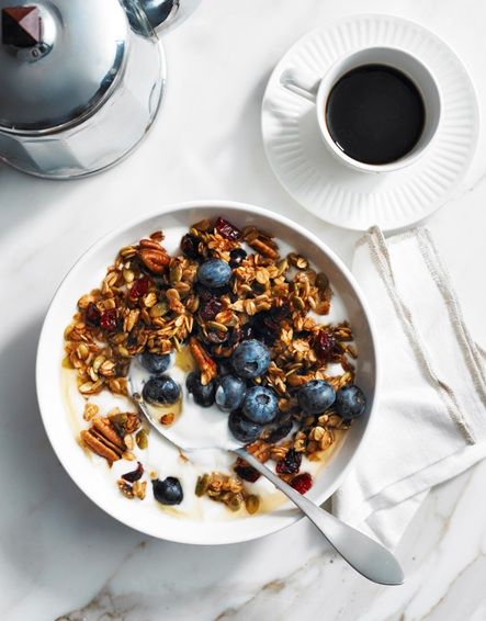 Joghurt und Granola klingen nach einer gesunden Alternative zu Müsli, und es ist irgendwie, solange es einfach ist und nicht aromatisiert ist. Viel Fruchtgeschmacks-Joghurt enthält Tonnen von Zucker, und so findet Chocolate- oder Erdnussbutter Granola statt. Gehen Sie immer auf einfache Weise, stattdessen und geschmack nur mit frischem Obst, Beeren und Nüssen.