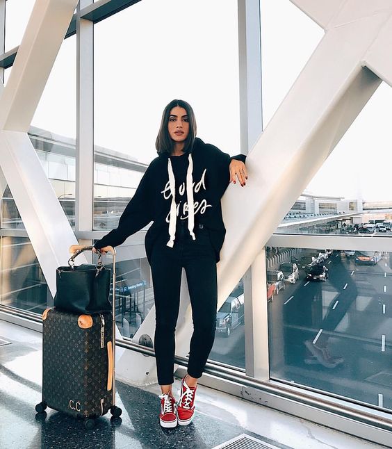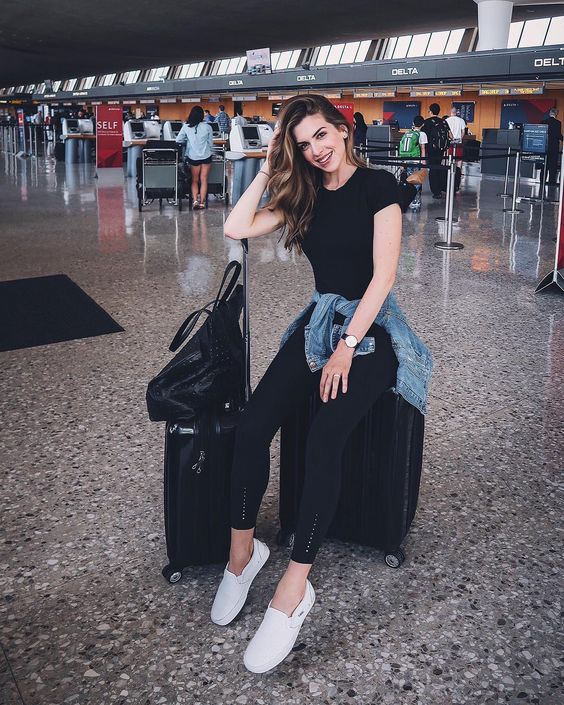 Sofern Sie eine 1 Stunde Flug nehmen - Kleid bequem. Niemand kümmert sich um, wie cool man sich in Ihrem Super Skinny Jeans und wie glamourös Ihre High Heels sind. Tragen Sie einfach einige Leggings und eine übergroße Spitze. Sie werden in es viel bequemer. Bequeme und leicht auszuziehen Schuhe sind ein zu Muss. Zunächst einmal - Sie könnten sie zu machen Flughafensicherheit gerne nehmen ab, und zweitens - man denke Sandalen hier, wenn das Wetter es zulässt - Vielleicht möchten Sie sie in Ihrem Sitz kuscheln auszuziehen.