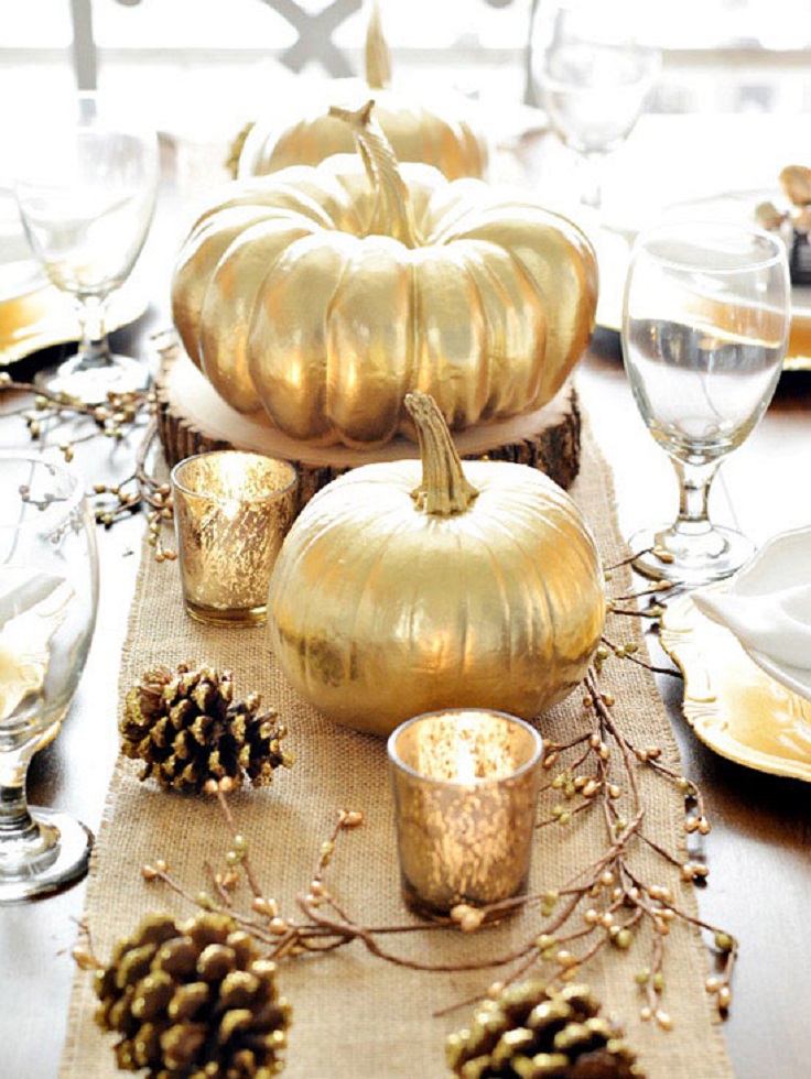 Wenn Sie mit Mini-Kürbisen gehen und das metallische Gold sprühen, sieht Ihr Tisch aus wie ein automatisches Martha-Stewart-Kunstwerk. Es ist ein billiger, schneller Weg, um den Klassen und eine teure Berührung für Ihren Tisch hinzuzufügen.